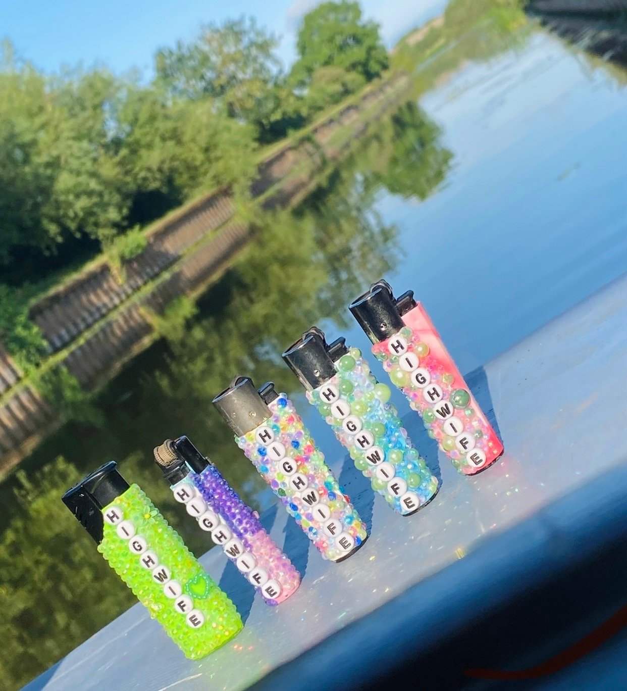 Get your jazzy lighters now, perfect for smoking sessions in summer and to take to events! No lighter is the same and all handmade - you can choose custom colours on a drop down selection when purchasing and add colours as a note!
